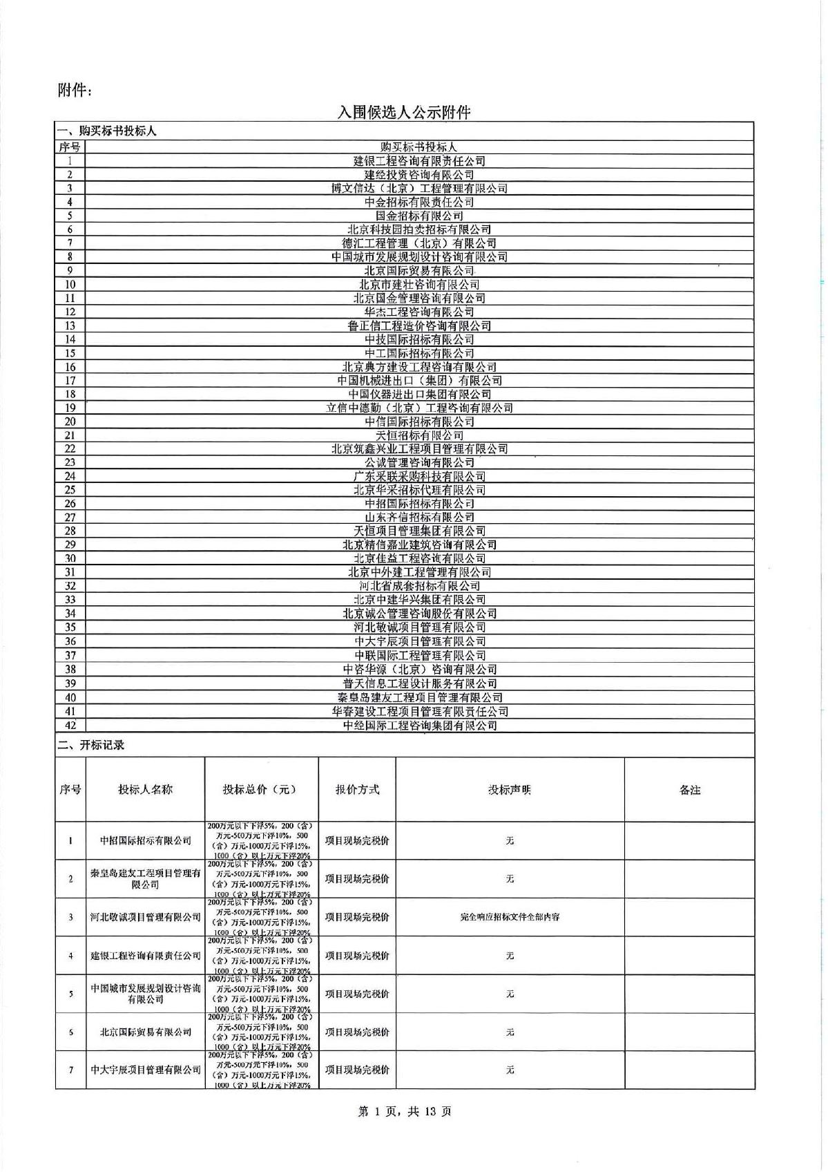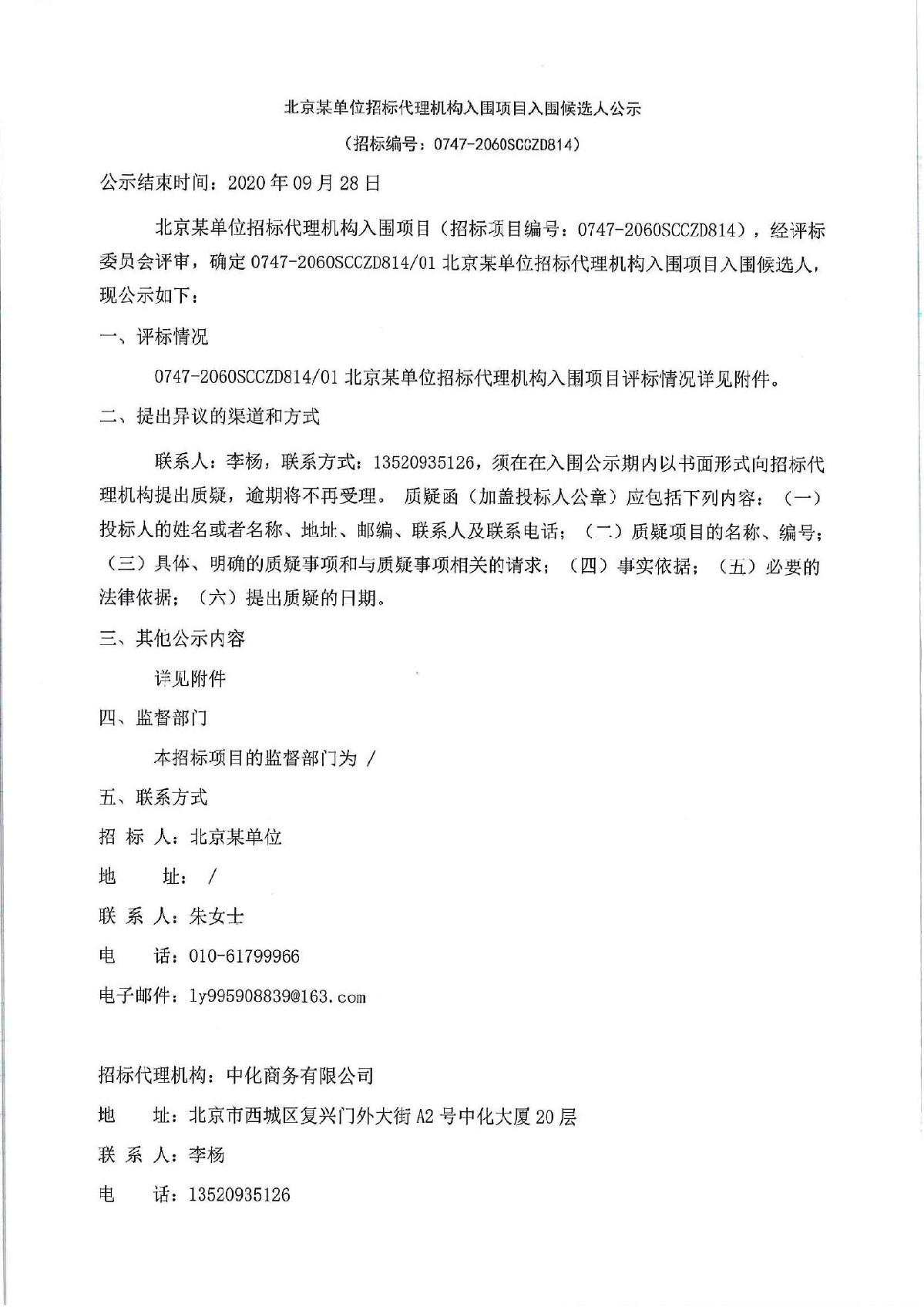北京宝威(中国)招标代理有限公司成功入围北京某单单位候选人